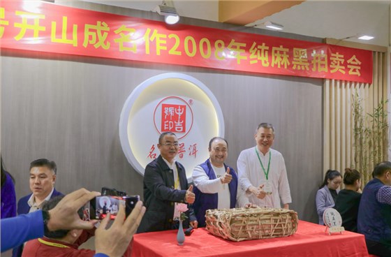 经过激烈追逐的十几轮的竞拍,最终喜爱普洱茶多年的中吉号铁杆粉丝林总以100万的价格成交,成为本次拍品——整件2008年纯麻黑的最终得主。